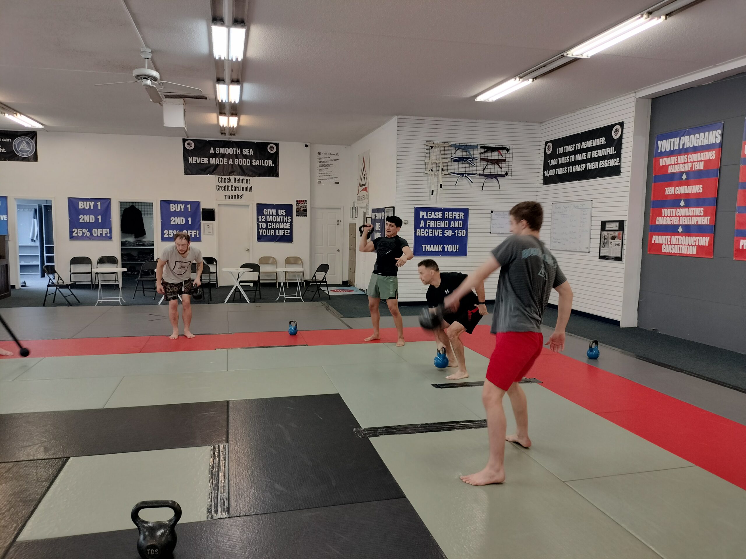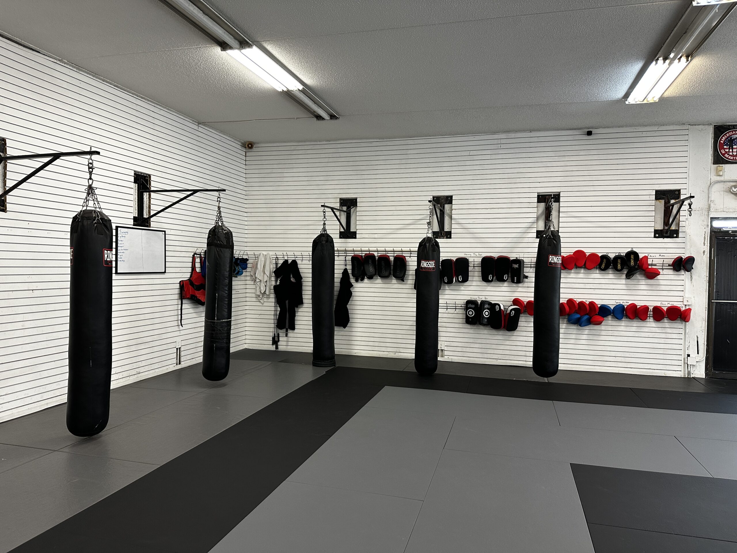 We have a back area with extra thick mats to practice takedowns as well as heavy bags, speed bags, kettlebells. This area is for adults only.